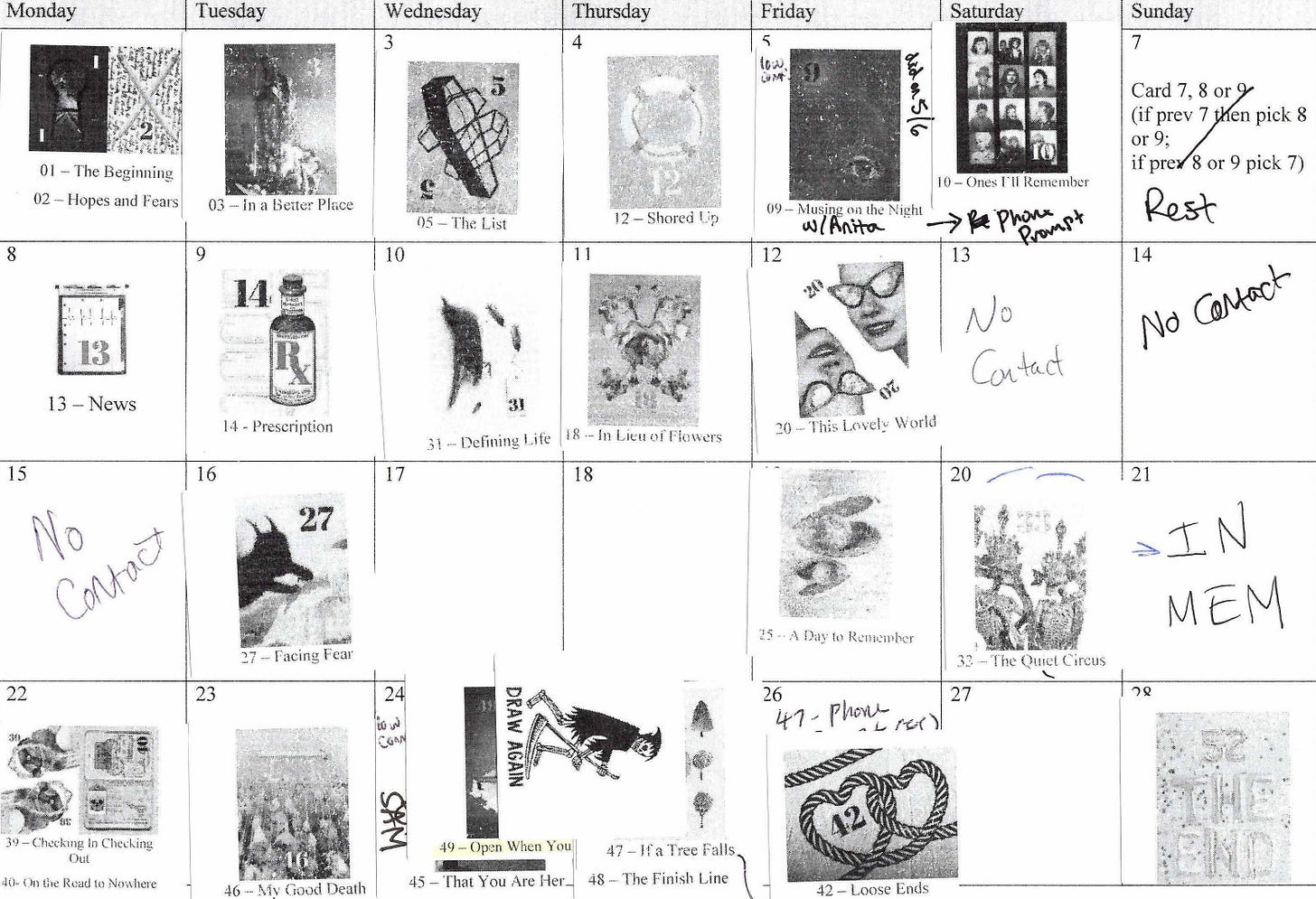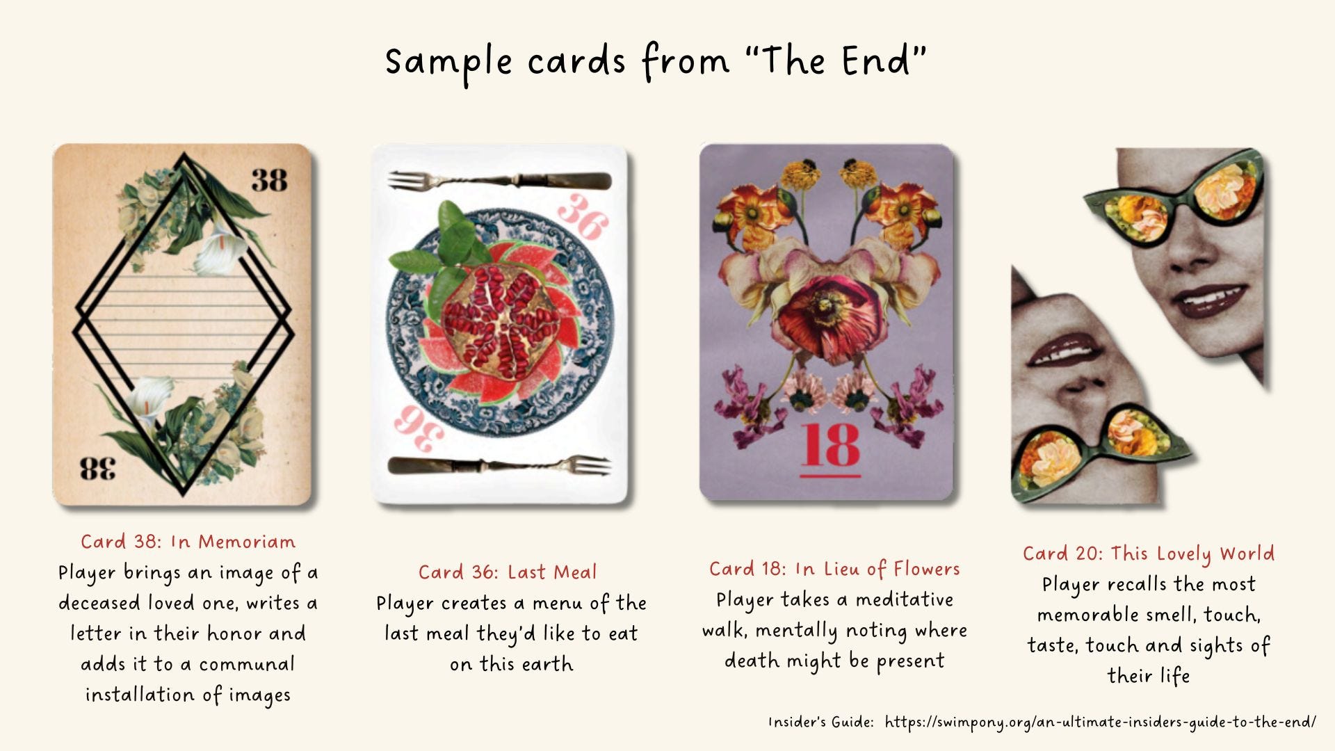 For 28 days, a mysterious entity called “The End” guides you via text message to draw a card from their deck, unlocking a corresponding “quest” that challenges you to consider mortality or what brings meaning to your life.