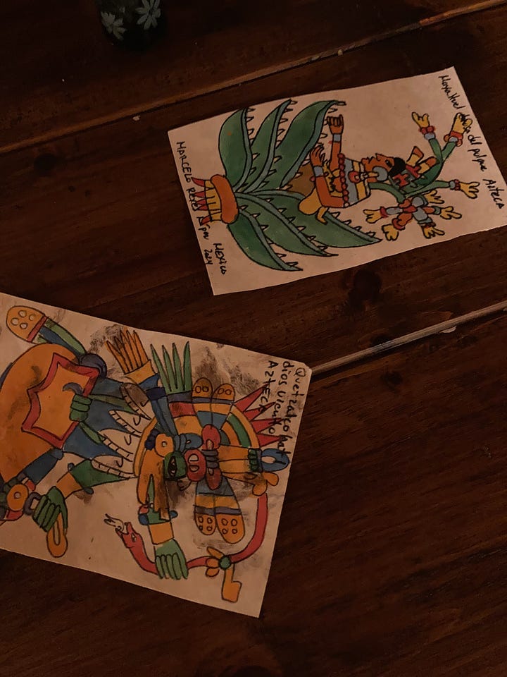 Enjoying Antigua (first two pictures), slowly coming back to photo embroidery (3), and learning more about the mythological origins of mezcal… (4)