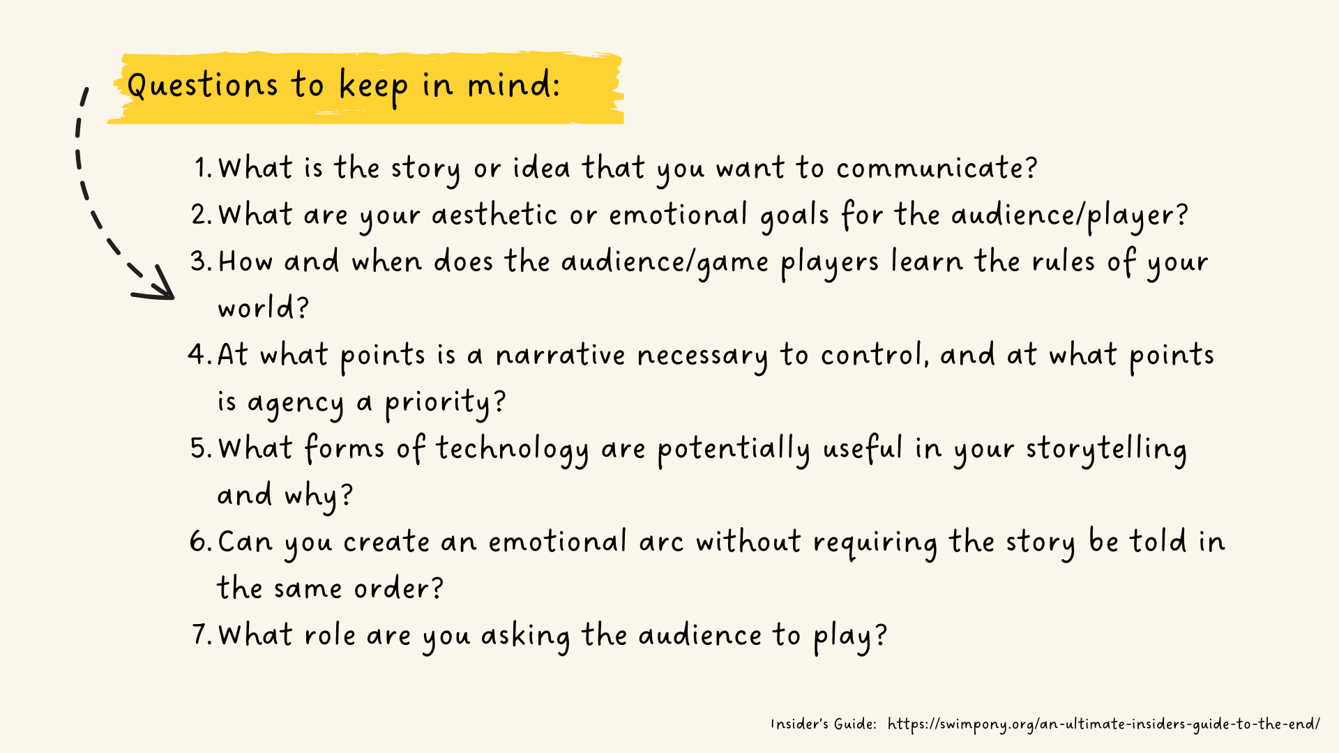 As you reflect on this, here are some key questions the creators of The End considered while designing the experience.